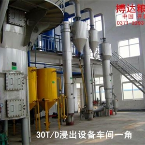 開封搏達浸出設備(30噸)主要由浸出器、蒸脫機、蒸發(fā)器、汽提塔、冷凝器等設備組成。主要用于芝麻、花生、油菜籽、油葵、大豆、玉米、棉籽、核桃、胡麻、山茶籽等各種油料的接觸、浸泡或噴淋,使油料中油脂被萃取出來。浸出設備采用不銹鋼列管冷凝器、鋁合金列管冷凝器或板式冷凝器、尾氣冷凍回收裝置,工藝先進,性能優(yōu)良。