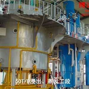 50噸浸出設備又名浸出設備、萃取設備、油料浸出設備是開封搏達糧油機械設計、制造的一整套浸出設備,主要適用于油料作物的接觸、浸泡或噴淋,使油料中油脂被萃取出來。