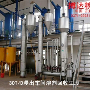 浸出設(shè)備(溶劑回收設(shè)備)油脂浸出設(shè)備溶劑回收,一般采用長(zhǎng)管蒸發(fā)器、層蝶式汽提塔、列管式冷凝器或噴淋式冷凝器。其作用把萃取液中的產(chǎn)品與萃取溶劑分離開加以回收。